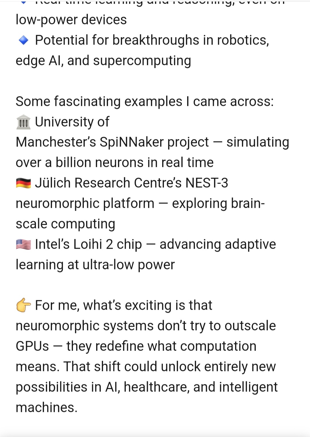 🚀 Beyond GPUs: The rise of Neuromorphic Supercomputers 🧠💡 Lately, I’ve been diving into research that excites me far beyond today’s “bigger GPUs and larger AI models.” One area that really stands out is neuromorphic supercomputing — and I wanted to share why I think it’s worth watching closely...www.linkedin.com
