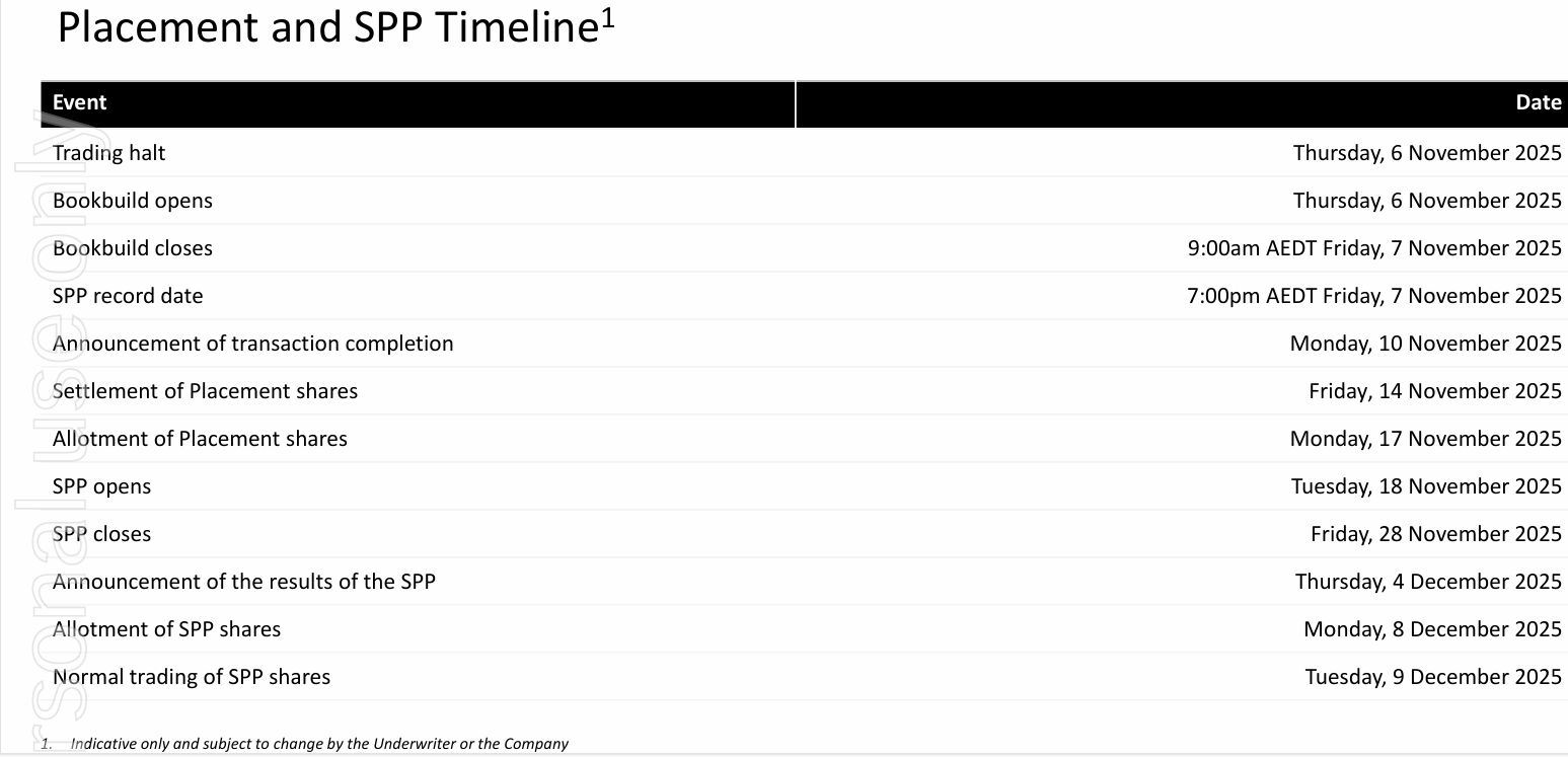 The Bookbuild was scheduled to close on Friday.