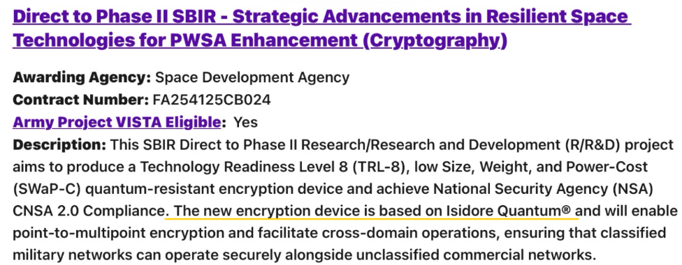 This SD-R program reinforces U.S. leadership in space security, aligning with President Trump’s vision for strengthening national defense through advanced cybersecurity solutions. Upon completion, the Isidore Quantum™ SD-R will be ready for NSA certification, military deployment, and full-scale commercial adoption.