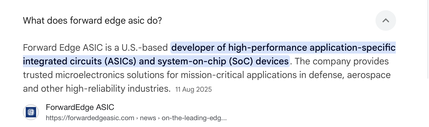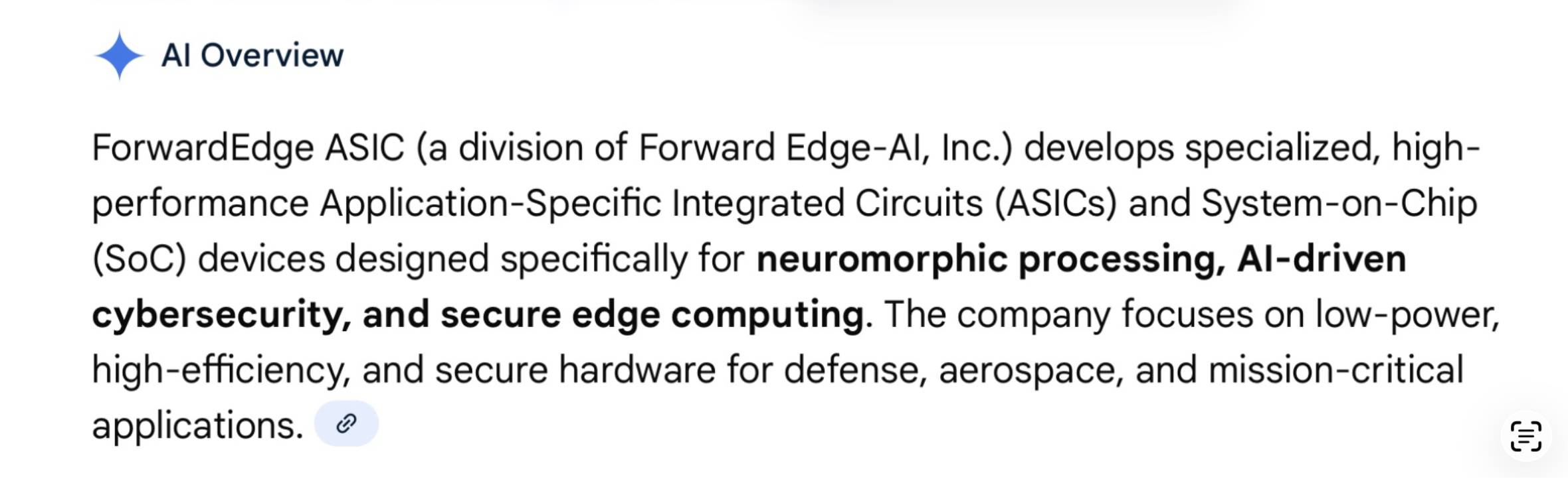 your AI Overview claims that ForwardEdge ASIC were a division of Forward Edge-AI, Inc., which appears to be yet another AI-generated hallucination: