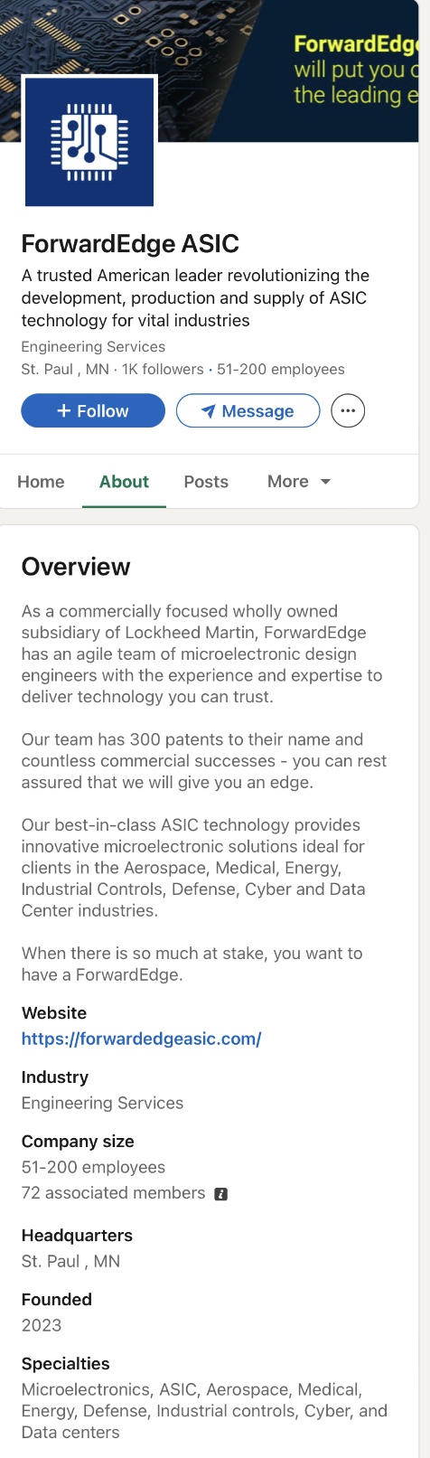 1. ForwardEdge ASIC (FEASIC) was founded in 2023 by Lockheed Martin:
