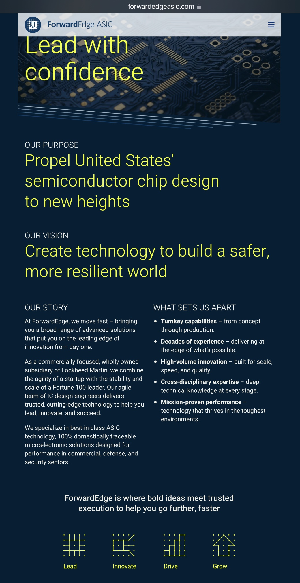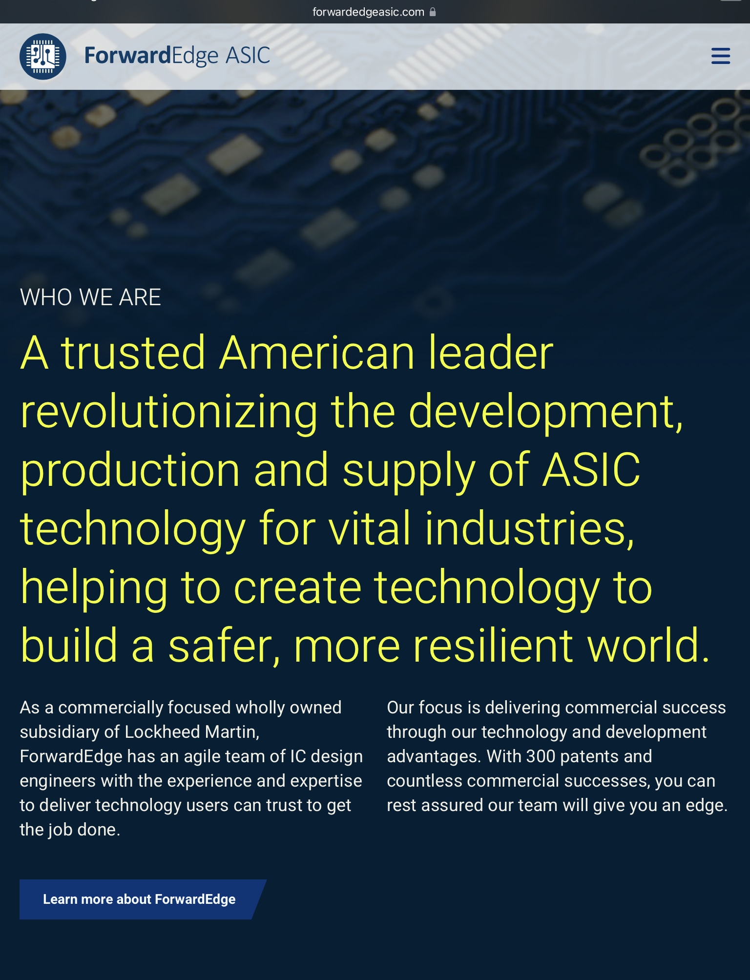 On May 1, 2023, ForwardEdge ASIC (FEASIC) was founded by Lockheed Martin to deliver best-in-class affordable microelectronics solutions for commercial, defense and security partners.