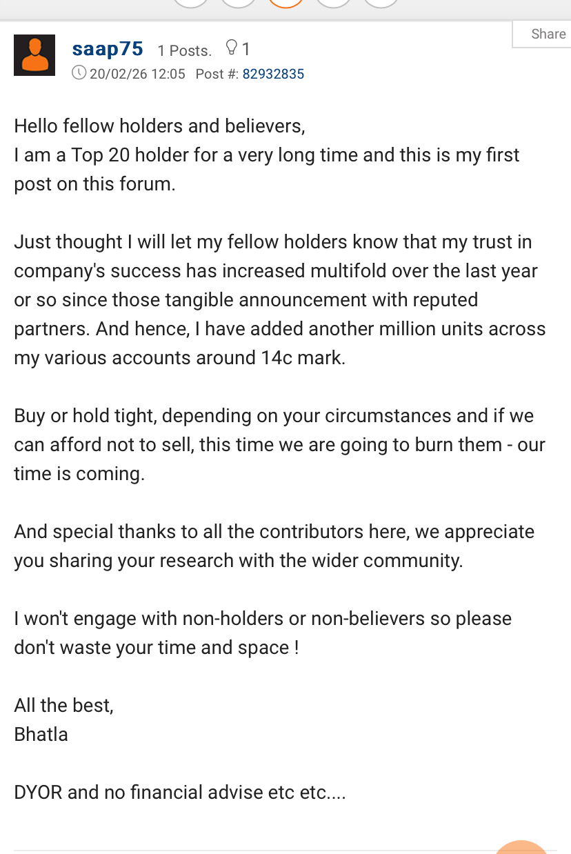 Many of us here are strong long-term holders, but we still struggle to understand why the market isn’t reacting to the positive technology progress and partnerships the way we might have hoped.