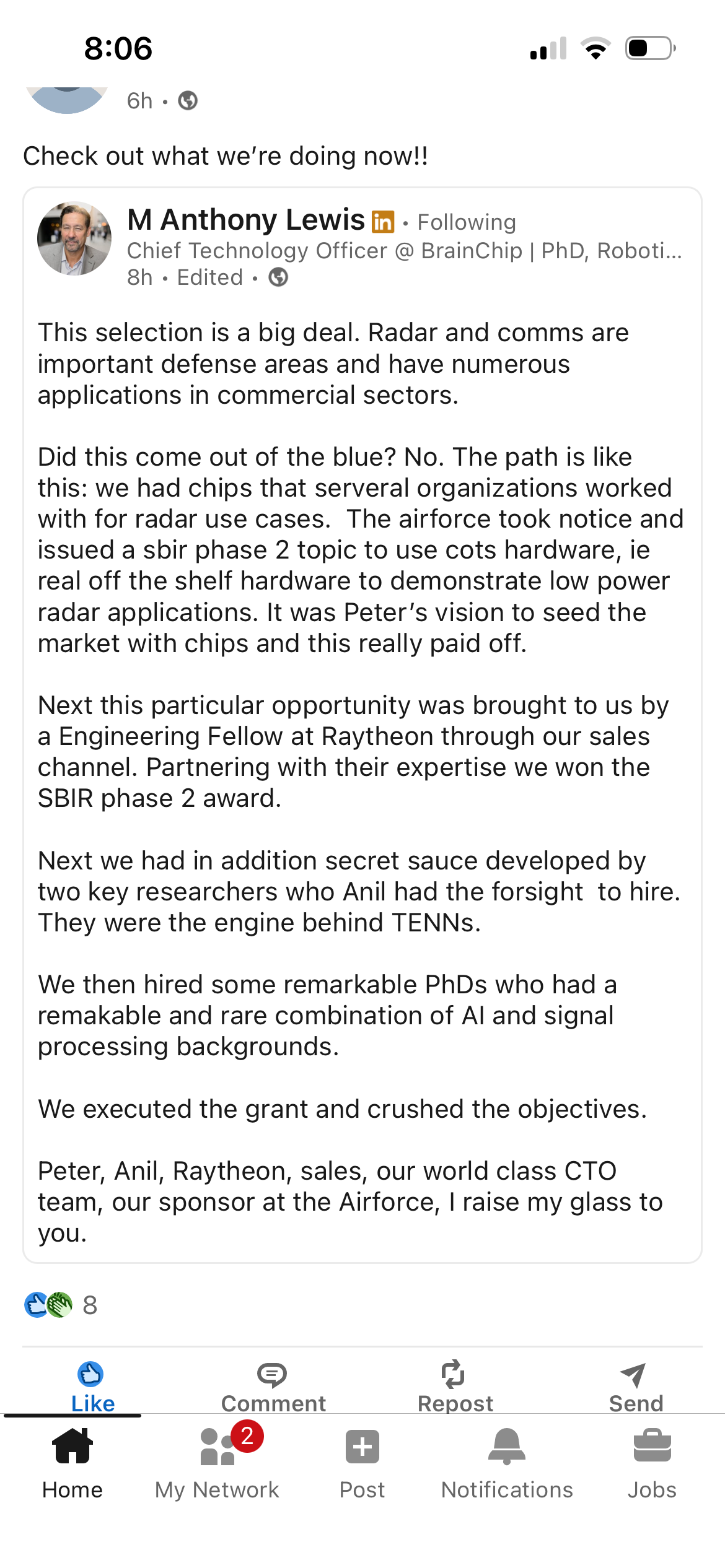 both companies' architecture working and expanding the future horizon, while all along not a word from either Brainchip or IBM,