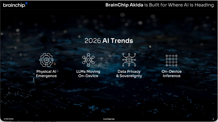 The next slide, please. So I'm going to hit some trends in where we we, we address them at a simplest level and maybe you build out the next slide if you don't mind, then I'll do both at the same time to make sure we keep on track. There's this thing called physical AI that's on the industry, which is doing inference in right near at the activity next to a sensor or sensor fusion and things like that. And of course, when you make edge technology like us, BrainChip, that's exactly what we do, which is physical AI enabling that possibility.