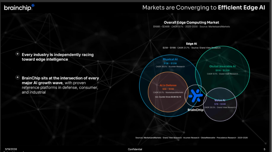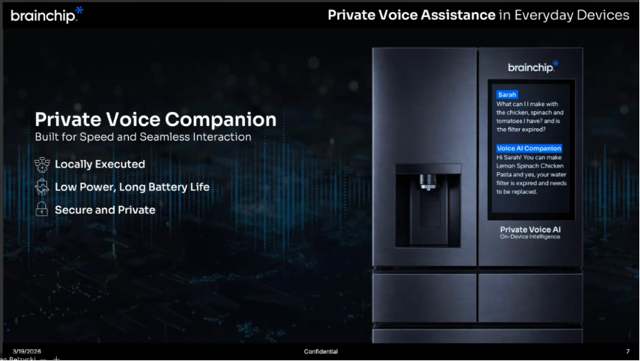 We're seeing tremendous demand and we're working. I can give some examples in the Q and A section about in the defence industry. And I know there were some discussions earlier about drones and others. There's a lot of things going on in the defence industry, create this opportunity right now, and I'll save them for a subsequent slide. Obviously, in wearables too. If you're going to do AI on a wearable device, you've got to hit all the points I had in the previous slide, which is privacy, latency, low power, because if you're going to have a wearable device, you don't want to be charging it every day. You want to charge it once a week. And when you're a neuromorphic or event-based like us, you get that incredible battery power that's allowed or to allow you not have to charge them, which is ideal for wearables. And then, of course, what I mentioned earlier is voice activated AI or LMs on the edge. We have an offering that addresses all of that, puts us right in the sweet part for these markets that are growing and growing quickly.