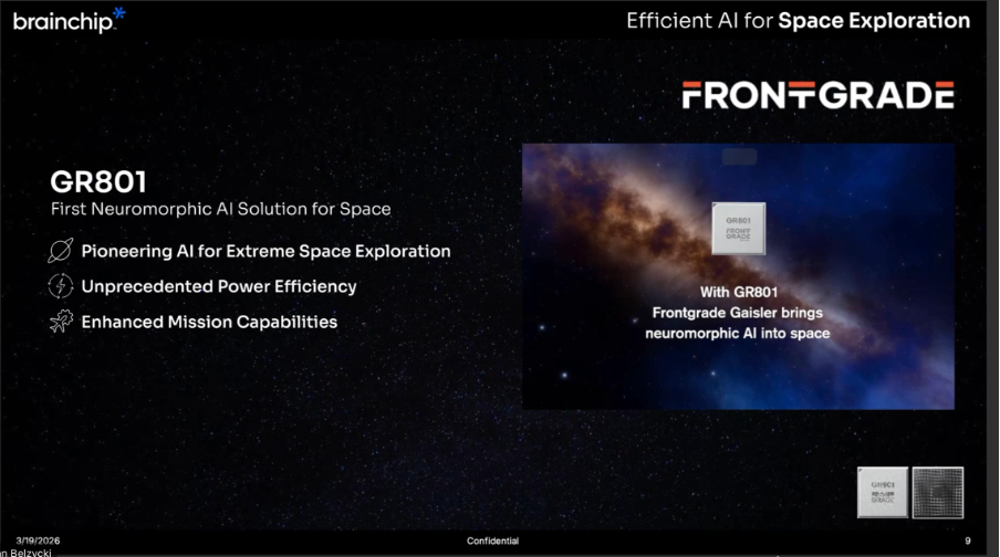 In the next slide, if I could, please, another example about where we're going into the market and seeing success, which is another demanding environment, which is space. We have a licensee, I mentioned earlier, that we have a license model. We also have a model where we sell chips. FrontGrade, which is a company that is, um, that creates chips specifically for, um, for space agencies and large aircraft companies in Europe is a licensee of ours, and they're creating these chips that are space grade, rad hardened for those who are familiar with that term. that allow you to do all kinds of AI function AI functionality, autonomous in space, some kind of object detection, perhaps some kind of logistical support, navigation support. Um, that chip will build later this year and start to roll it in mass production of the licensee we work with now for a couple of years.