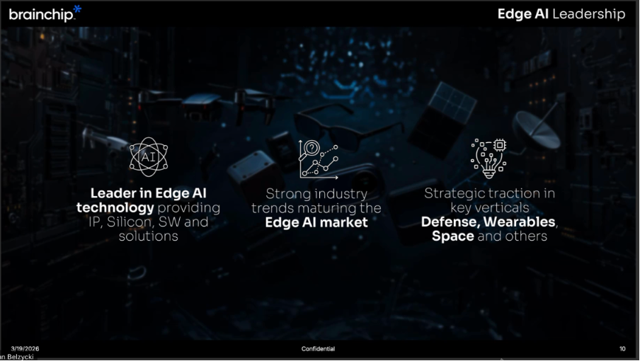 BrainChip Holdings Ltd. - Announced a strategic partnership with L3Harris Technologies to integrate the Akida 2 neuromorphic processor into L3Harris's AN/APQ-187 Silent Knight radar system for autonomous target classification, with initial prototype delivery scheduled for Q3 2026 under a U.S. Army SBIR Phase III contract valued at $18.5 million. "
