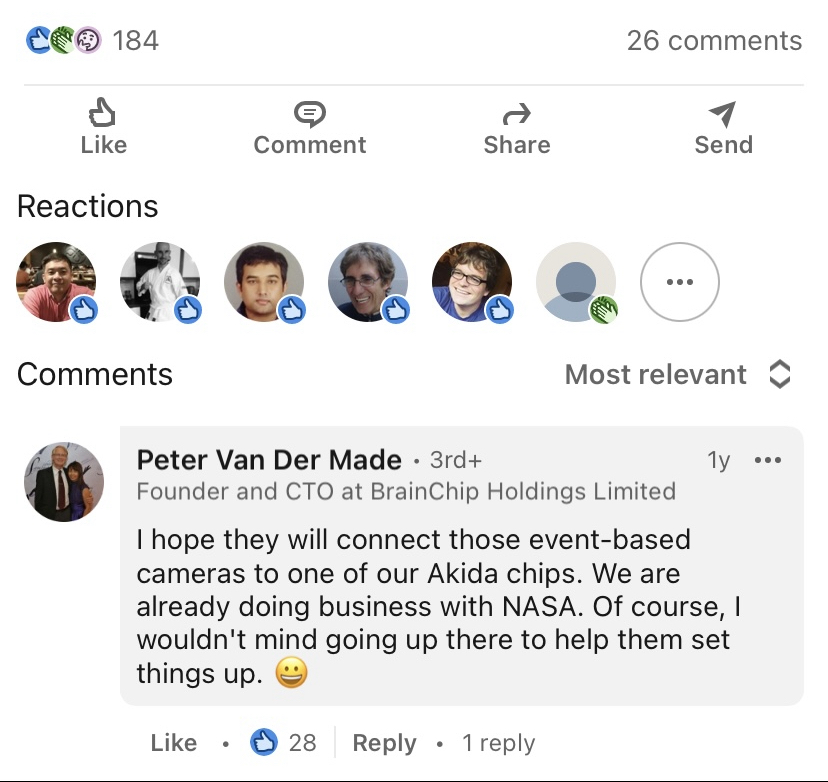 Once the tipping point is reached then it will be a case of use Akida or get left behind: no CEO wants to be the next Kodak! So I think there are a lot of entities that want to keep Akida unknown or ridiculed for as long as possible; either to accumulate or blunten the competitive edge. Or our NDA’s to gain the competitive advantage; we could be talking billion dollar markets!