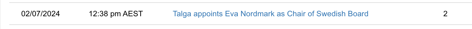Apparently the Google searches for talga increased last month in Stockholm from 0 to something more than 0.. that's where the SC is. Could just be the effect of MT talking to people... But could also be some indication of stuff moving..
