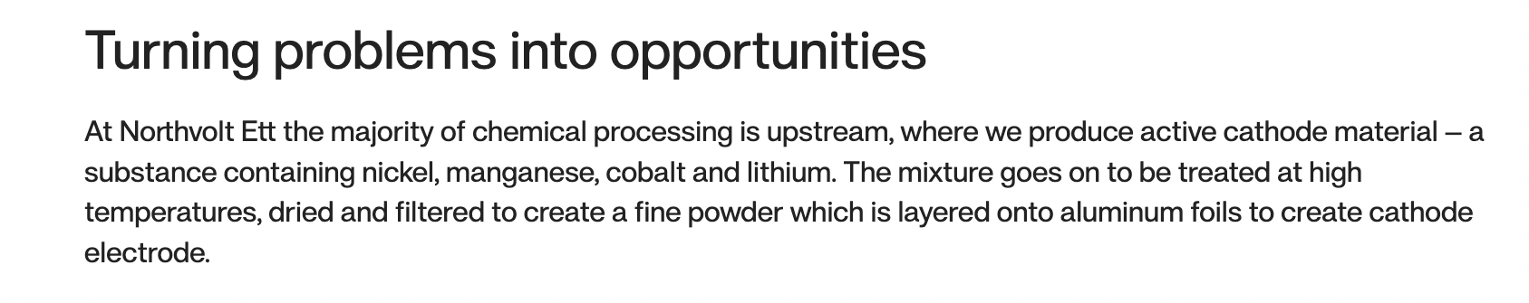I have posted bout this on hotcrapper a few times. There were some documents outlining Northvolt's anode copper foil coating process and they mentioned they relied on an upstream supplier for active anode matierial.