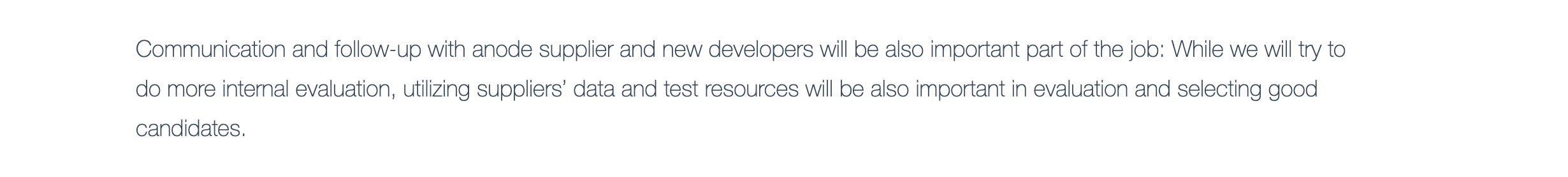 Maybe this could be from interest for you or others:They also have a current job posting for an anode engineer with the following: