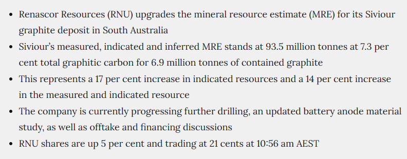 Renascor Resources (ASX:RNU) upgrades Siviour MRE​