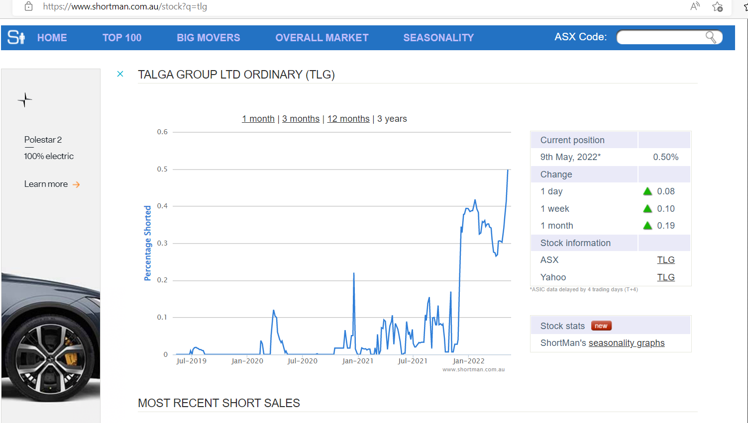 I did not expect that, thx for the heads up. The short thesis for Talga is pretty ... short sighted. It must be based on the prospect that permits are denied. The market is already down as a while, Talga is simply going with it at this point. Shorting now is like buying at ATH without a catalyst. So either someone shorted Talga together with a bunch of other stocks as an expectation the entire market is moving further down, or they expect Talga specific, negative, information. Both is pretty unlikely in my opinion. This will give us more of a catalyst when the positive news finally come.
