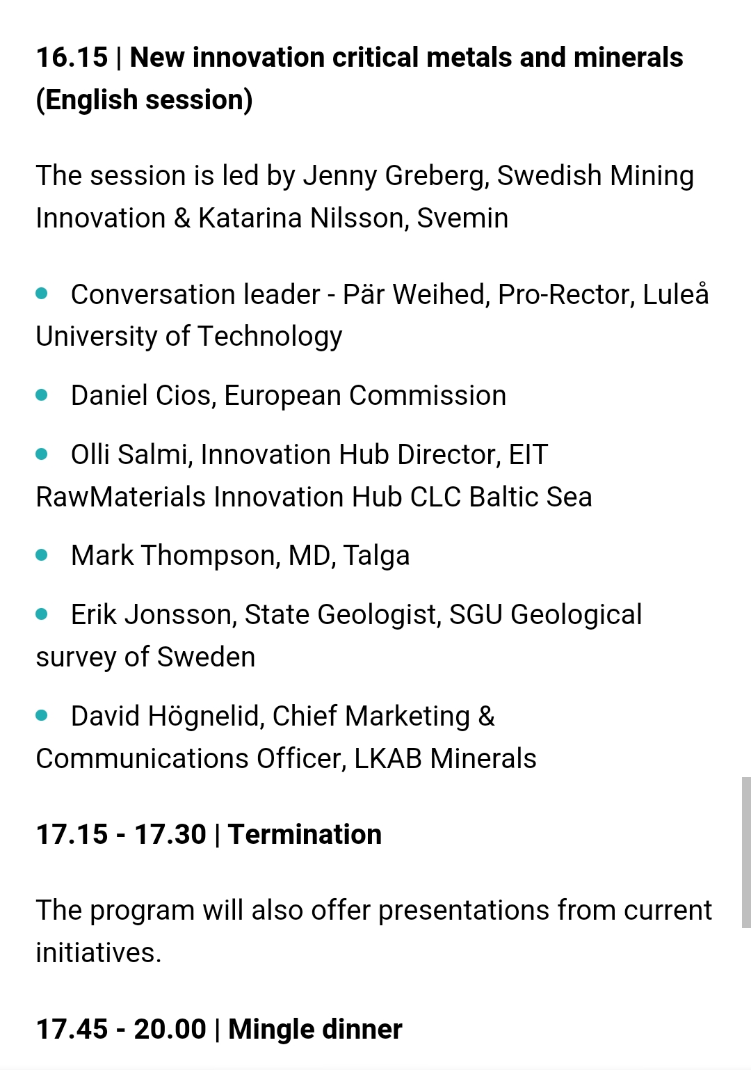 Sounds like there was a lot of positive sentiment at the CRM summit, including comments from European Commissioner, Thierry Breton. What i hope is those sentiments are translating into tangible funding opportunities that Talga can tap into towards its project capex.