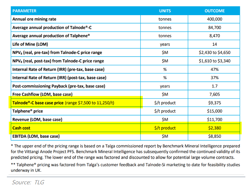 If you look at the project sensitivities, a 25% drop in Tal-C price (US$9,384/t) gives a PRE-TAX NPV of about US$500M